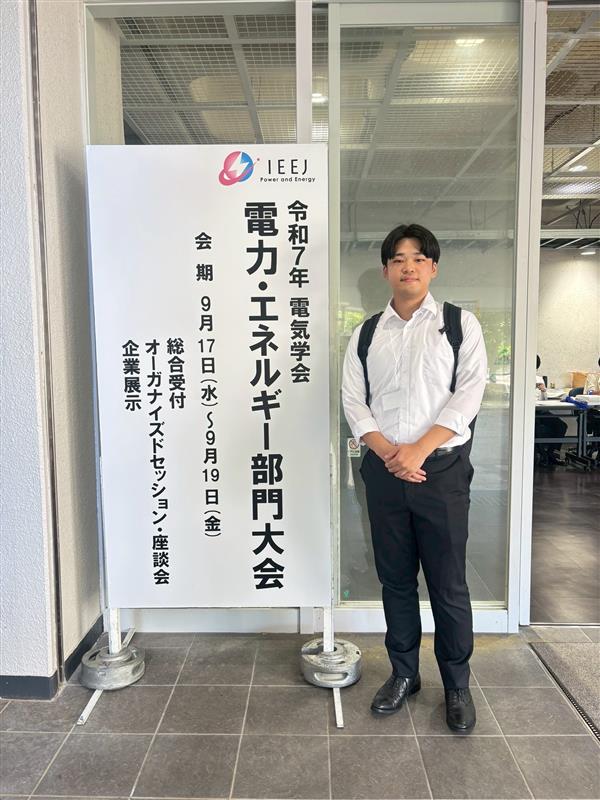 大学院2年の俣野光稀(またの こうき)君が令和7年 電気学会 電力・エネルギー部門大会で口頭発表を行いました.