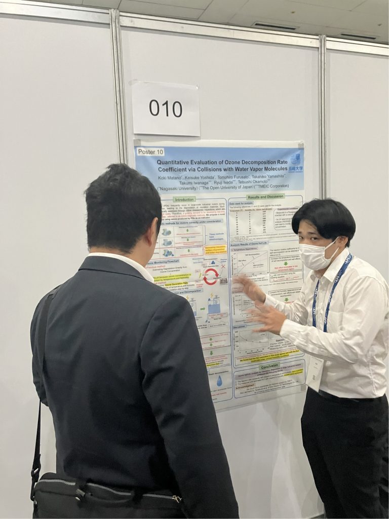 Poster 10 Quantitative Evaluation of Ozone Decomposition Rate Coefficient via Collisions with Water Vapor Molecules,Koki Matano, Keisuke Yoshida, Tomohiro Furusato (Nagasaki University), Takahiko Yamashita (The Open University of Japan), Takumi Iwanaga, Ryuji Ikeda, Tetsushi Okamoto (TMEIC Corporation)